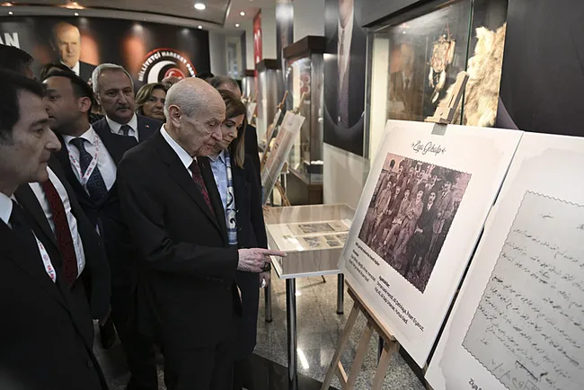 Bahçeli, konuşmasının ardından Ziya Gökalp’in el yazması eserleri, fotoğrafları ve şiirlerinin yer aldığı sergiyi gezdi.